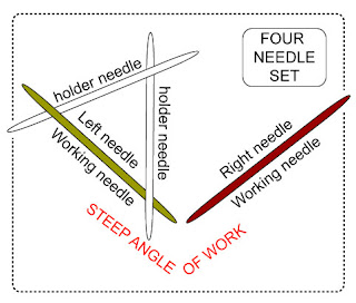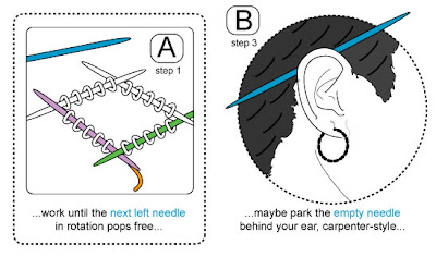 This is incredibly awkward at first-- the needles won't cooperate, and you'll tear your hair. But, if you persevere, you will succeed.