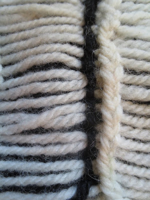 Herewith, the two tricks of today's post: 1) anchoring the ladderback with a twist, 2) pinstripe-tacking the long floats into place alongside the catchment column.